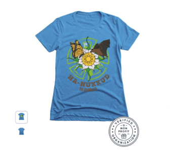 The shirt design features species with special meanings for the Tohono O’odham, including animals and plants featuring prominently in legends and winter storytelling traditions. Tohono O’odham consider saguaro cacti to be tribal members, and the saguaro fruit is an important traditional source of food and also used in traditional ceremonies. indicating the Tohono O’odham new year.