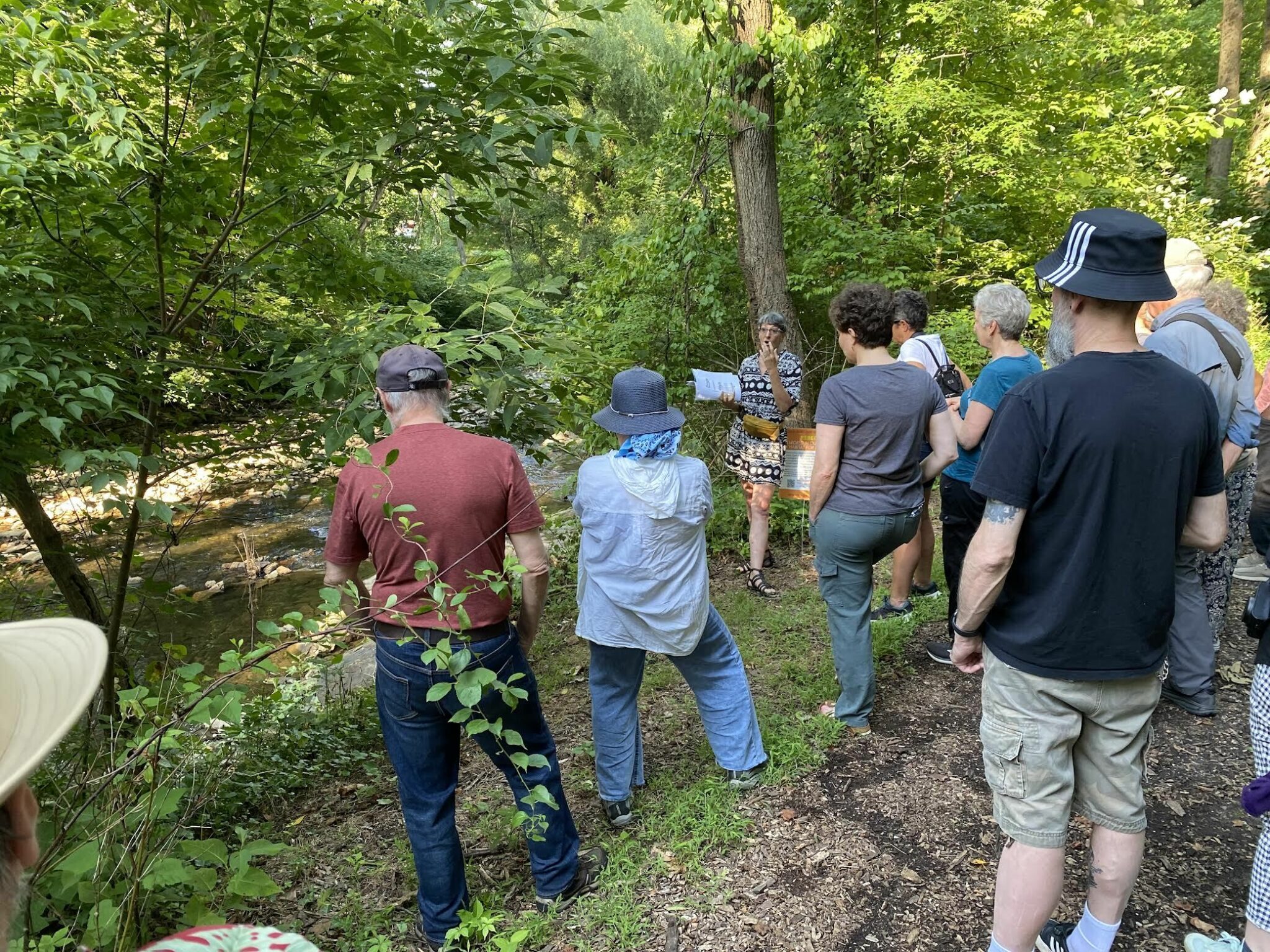 Watersheds have evolved as the ecosystems I’m particularly interested in–they are the essence of what scientists are increasingly calling the critical zone, where rock, water, plants, fungi, and–based on newer science, microbes–interact with each other to create the foundation for life. And, where I live, our environmental challenges center on water–how to adapt to heavier rainfall and stormwater runoff, combined sewer overflow, and flooding due to heavier rainfall. It’s important to me to have some baseline scientific knowledge of the ecosystems I work with, so in 2022 I became a streamkeeper with the Tookany/Tacony-Frankford Watershed Partnership (TTF). I monitor a section of Tookany Creek once a month, and through that work have attended trainings to better understand how to assess the health of watersheds. I was offered the opportunity to get certified as a Save Our Streams monitor, which entailed learning how to sample and identify macroinvertebrates. And I became really fascinated with them!